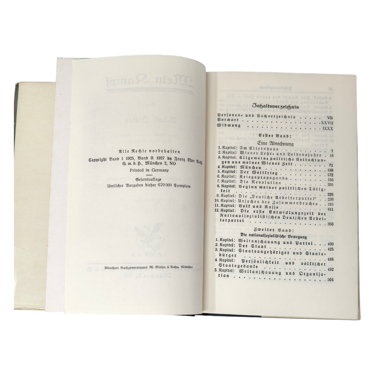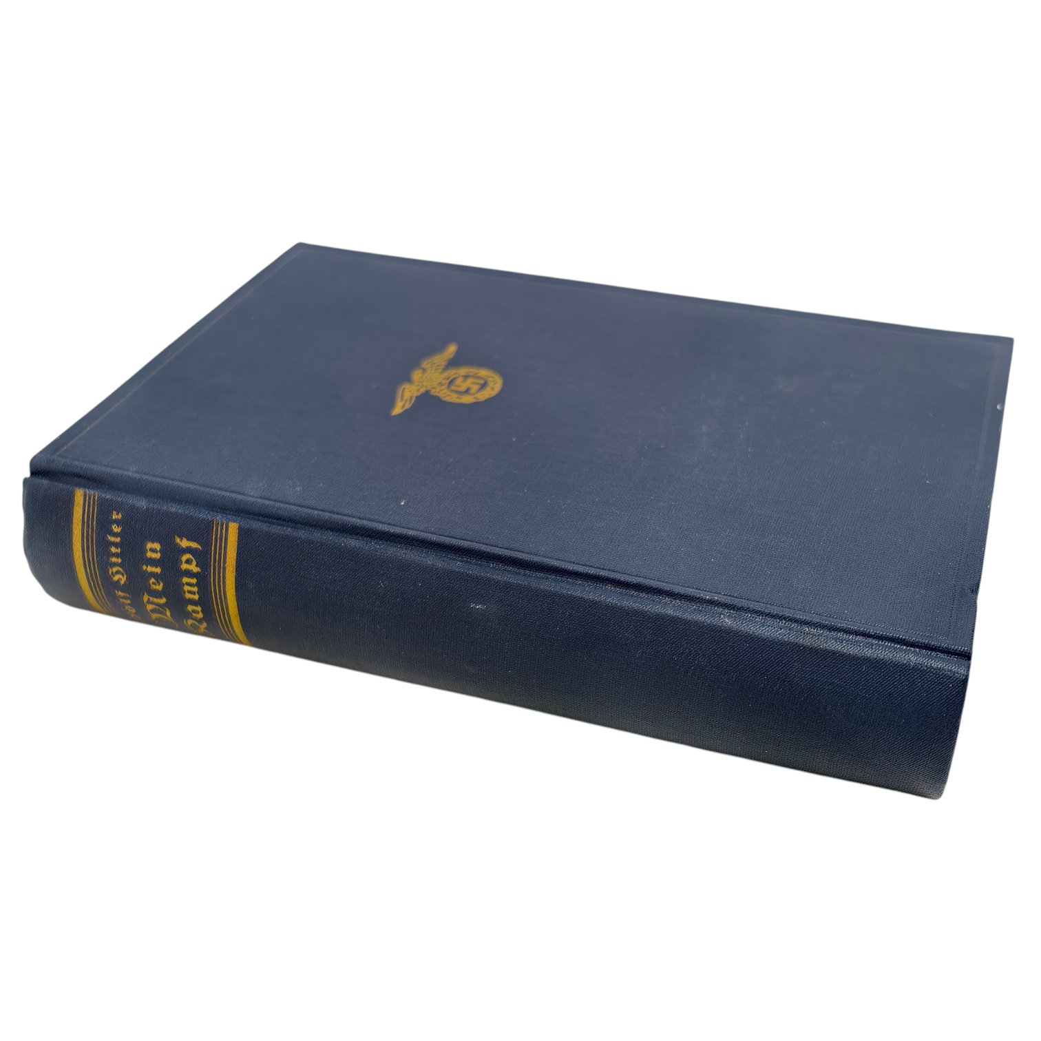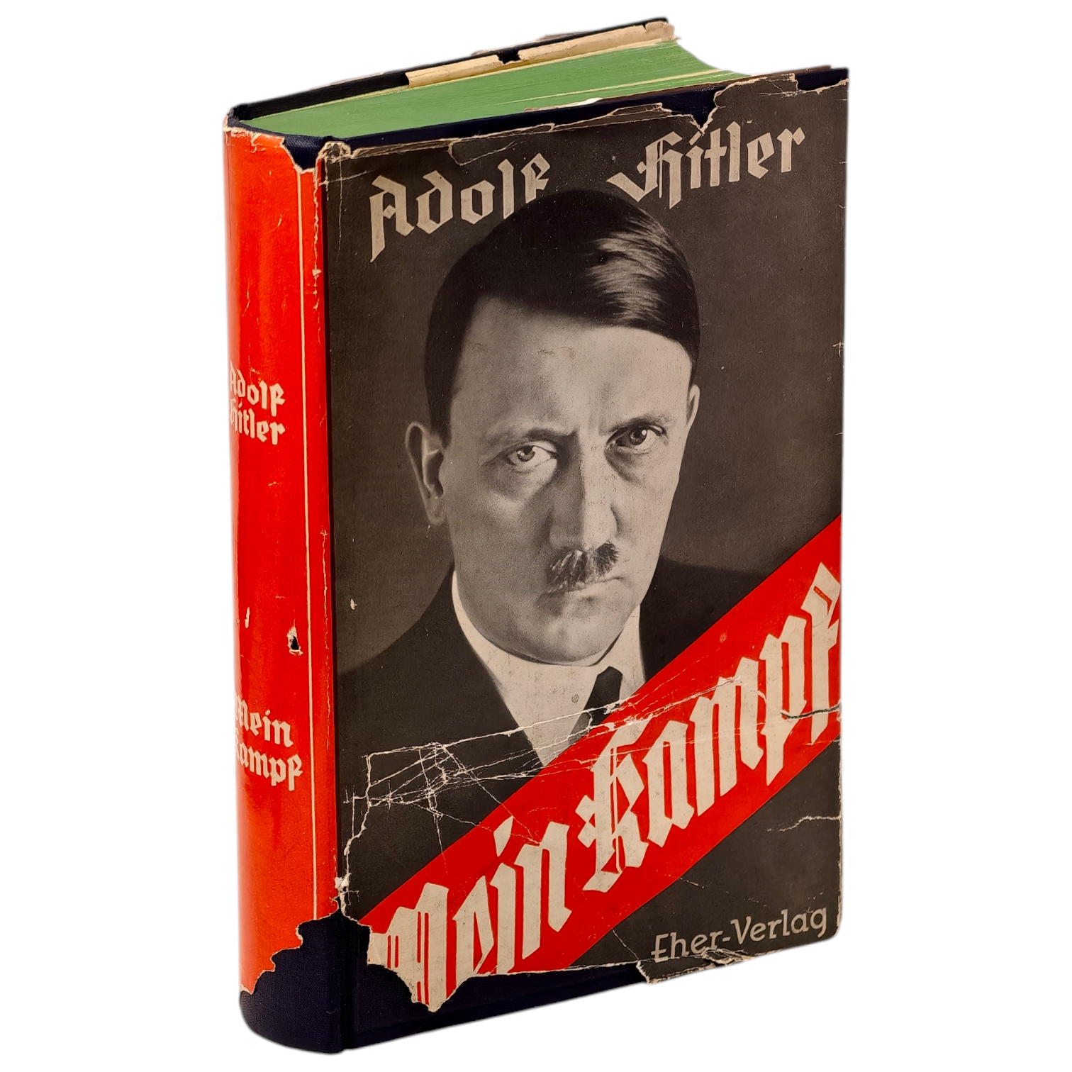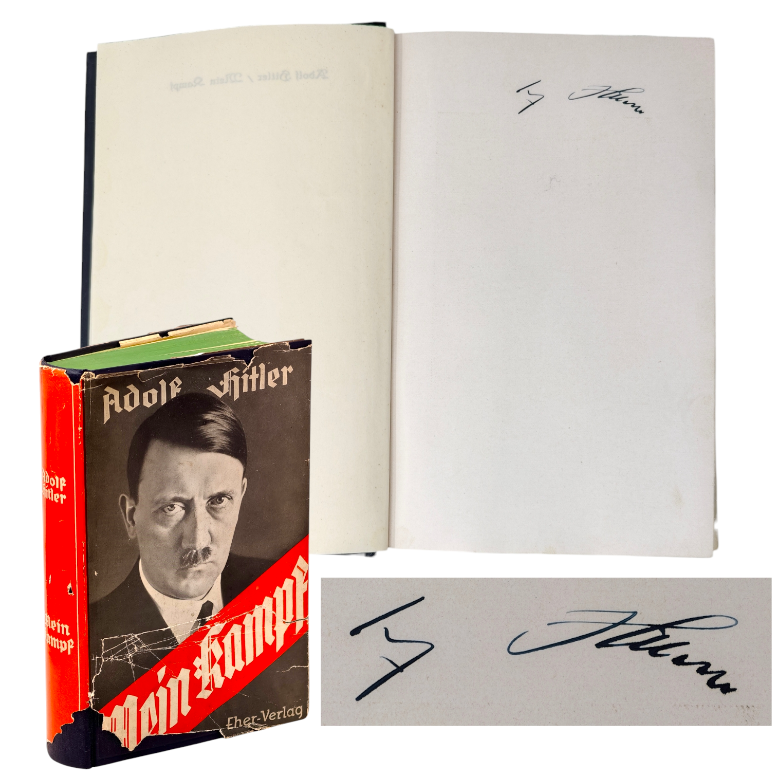 1933 People's Edition Signed Copy of Mein Kampf. Signature is in fountain pen ink is Hitler's early 1930's style. The dust jacket is 90% complete with some tape repairs and the book itself is in phenomenal condition.