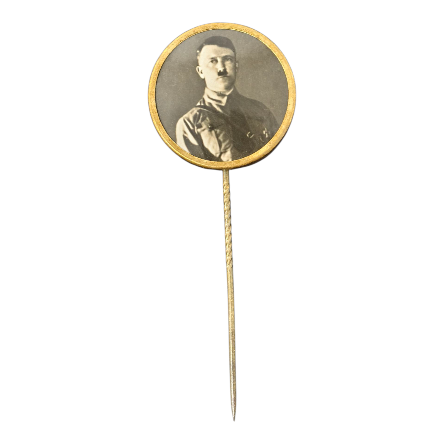 Early Adolf Hitler Patriotic Cellulose Stickpin worn by sympathizers during the Kampfzeit period. These are very rare and desirable pieces.