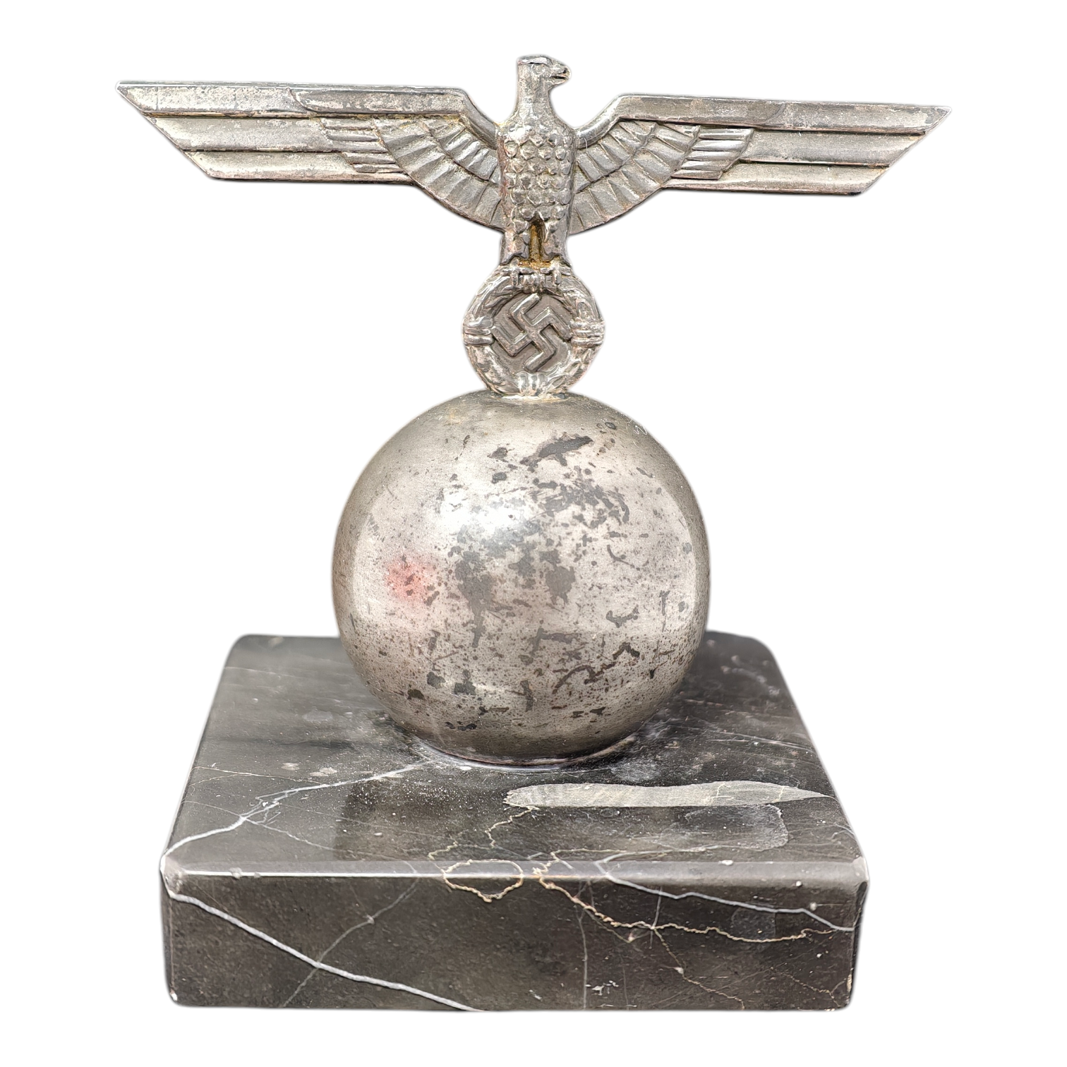 Product Description Third Reich Nazi Desk Eagle Ornament with original base and good condition. Measures about 4 inches tall.